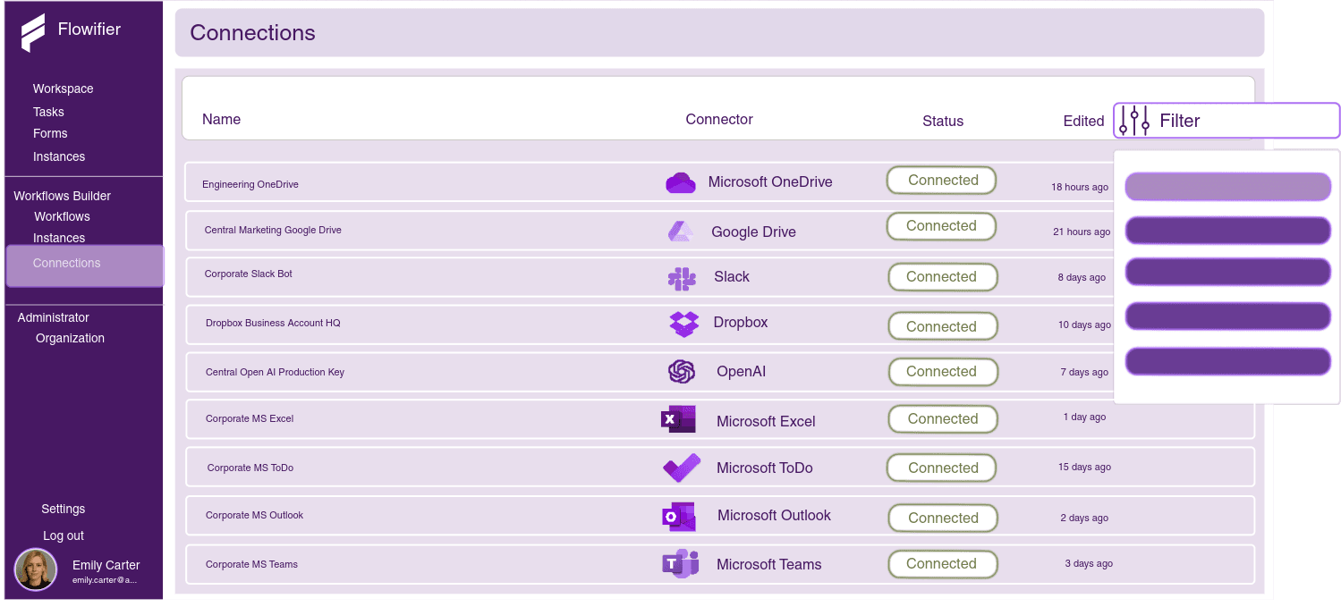 Experience how powerful Integrations unify your entire business ecosystem. Seamlessly connect Flowifiter with your existing tools and platforms to ensure smooth data flow and real-time synchronization. By removing data silos, you create a connected environment that boosts speed, accuracy, and collaboration.