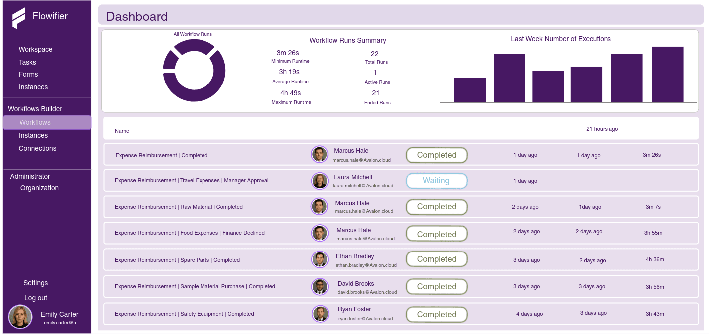 Take control of your business performance with real-time insights and data analytics. Flowifier’s powerful dashboards and reporting tools help you track key metrics and optimize processes for maximum efficiency. Make informed decisions, adapt to changes quickly, and continuously improve your operations.